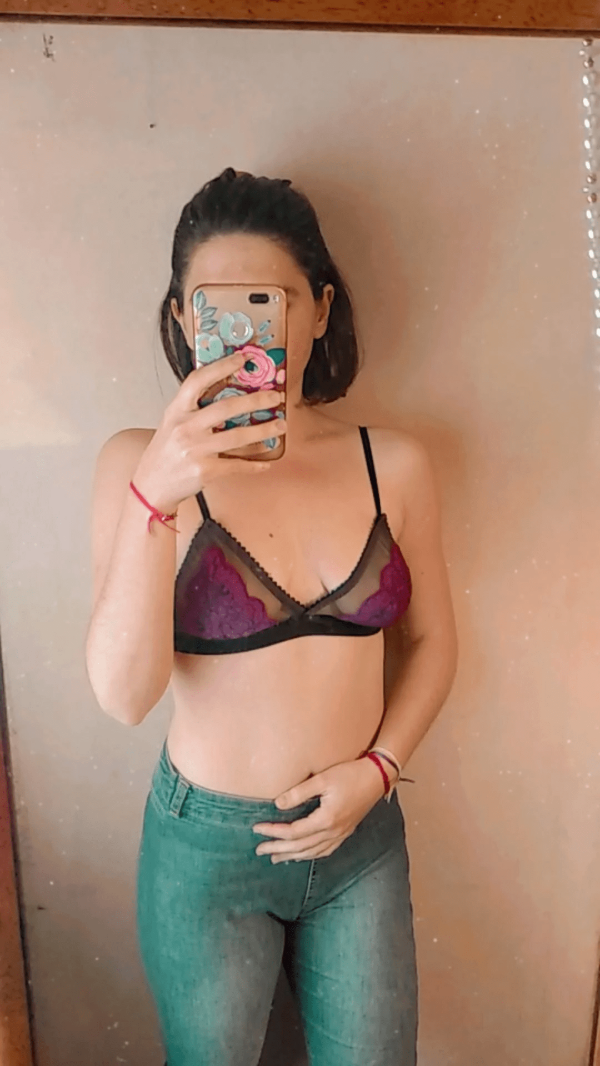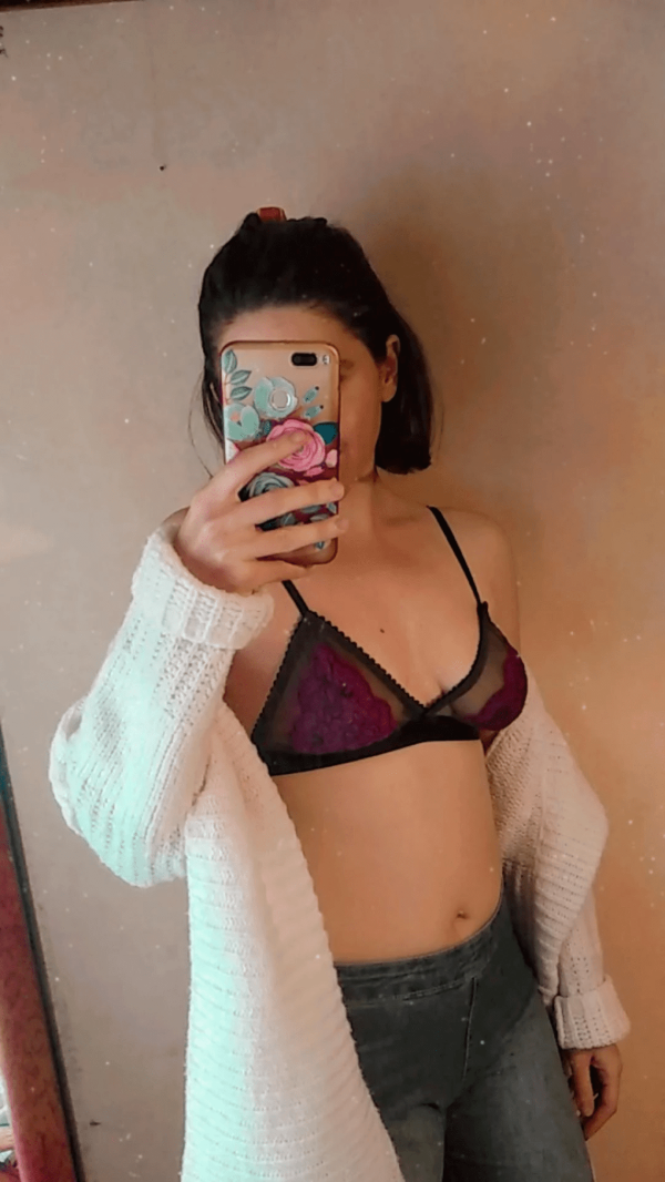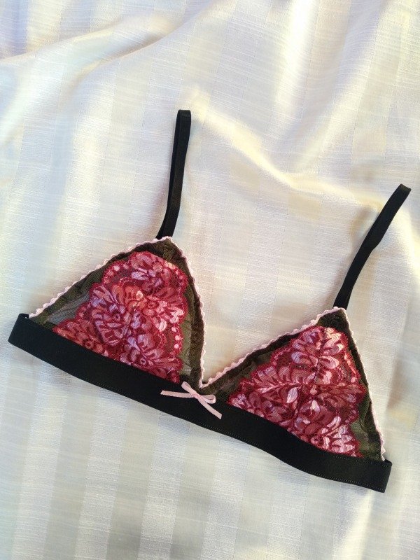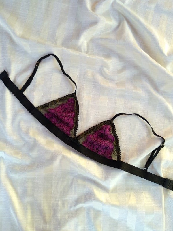 -Bralette de microtul elastizado, super cómodo, con recortes centrales de puntilla.
