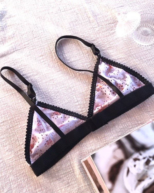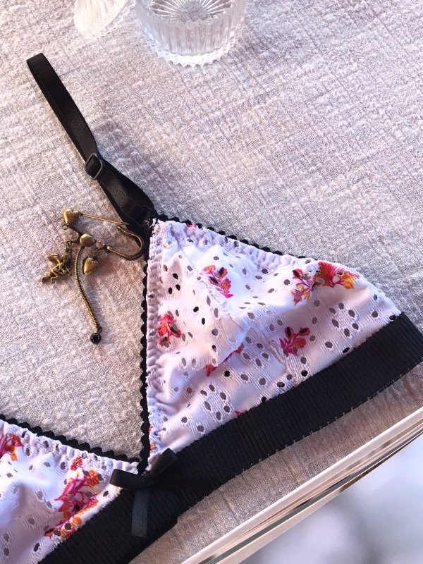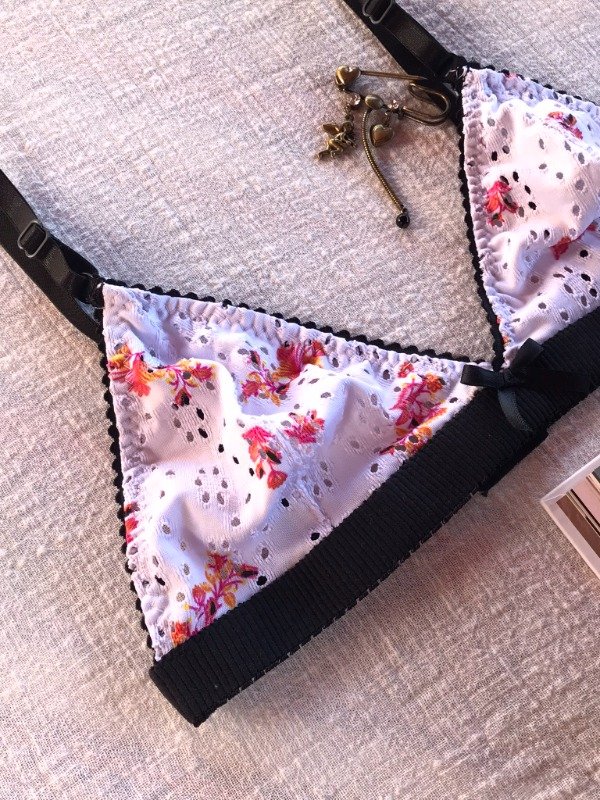-Bralette confeccionado en broderie estampado levemente calado elastizado.